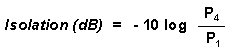 levels in dB between the input port and the isolated port when the two output