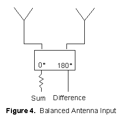 If phase matched lines are used for an antenna input to a 180° hybrid coupler as shown in Figure 4, a null will occur directly between the antennas. If you want to receive a signal in that position, you would have to either change the hybrid type or line length. If you want to reject a signal from a given direction, or create the difference pattern for a monopulse radar, this is a good approach.